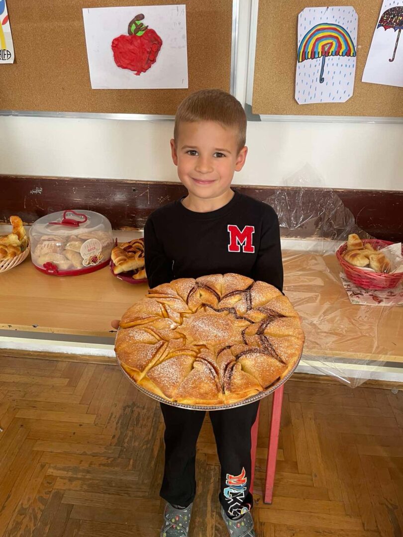 Bilo je tu pregršt kolača, kruha i pekarskih proizvoda koje su učenici lijepo aranžirali, zajedno sa svojim učiteljem i učiteljicama. A bilo je i pjesme, recitacija i molitve.