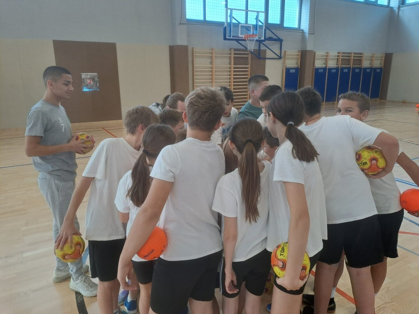 Četrdeset učenica i učenika naše škole prisustvovalo je dana 29. studenoga pokaznom satu rukometa. Trening je vodio trener mlađih dobnih skupina RK “KTC”, g. Kristijan Kamenar.